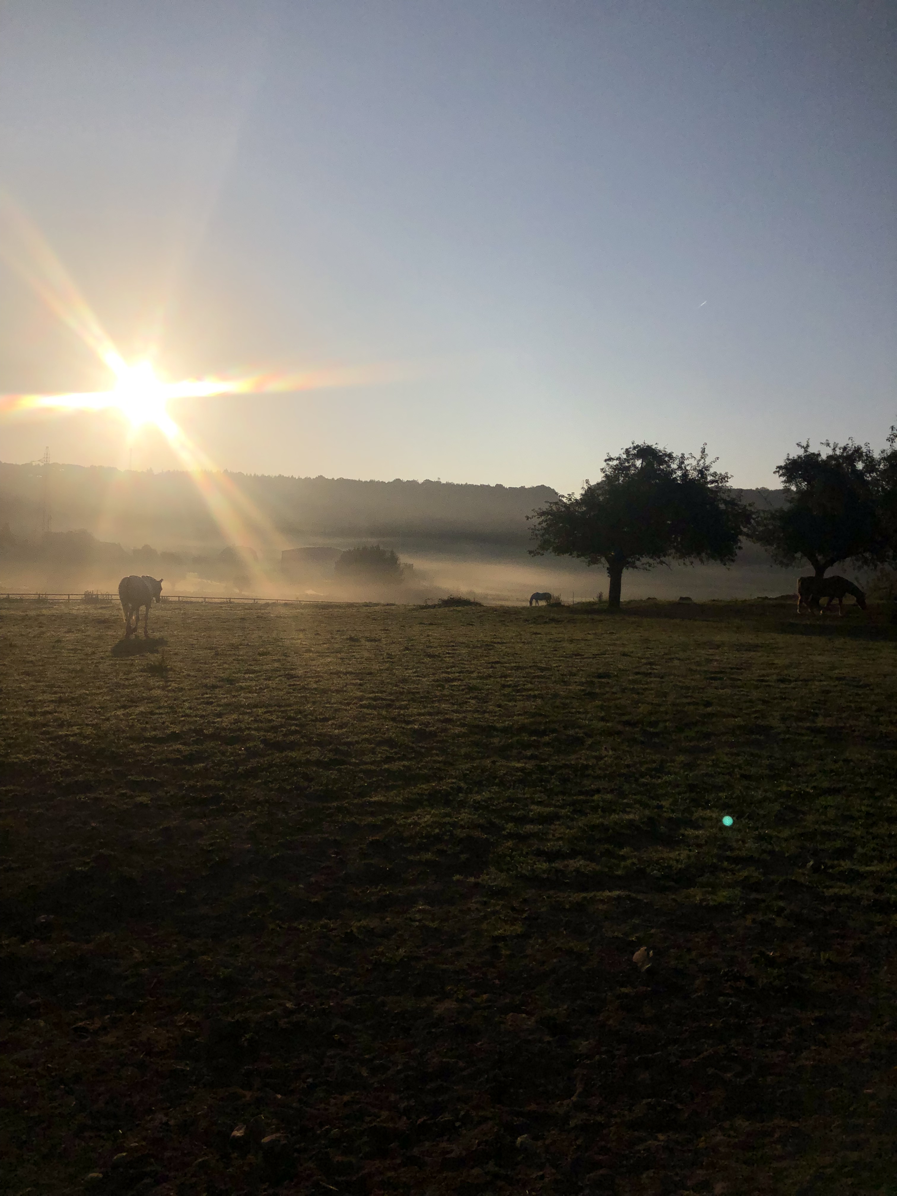 La pension comprend le paillage des boxes tous les jours, le curage des boxes une fois par semaine, une sortie le jour de curage pour les chevaux en pâture commune, une ration de céréales matin et soir et une ration de foin l’après-midi. Les cours sont en supplément.